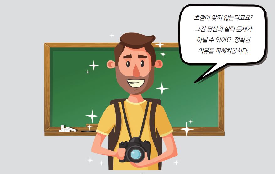 카터 : 가장 흔한 원인은 외부 충격이란다. 대다수 사람들이 카메라를 전용 가방에 넣고 다녀 안전하다고 생각하지만, 광학장비가 워낙 정밀하다 보니 완벽한 보호를 기대하기는 힘들지. 가방을 바닥에 내려놓을 때마다 장비는 미세한 충격을 받기 마련이니까. 이 충격으로 인해 렌즈의 포커스 군 혹은 카메라의 광학계에 유격이 생겨 정확한 검출이 힘들어지면 종종 이런 현상이 생기곤 해. DSLR 카메라에서 주로 나타나는 문제점이지.