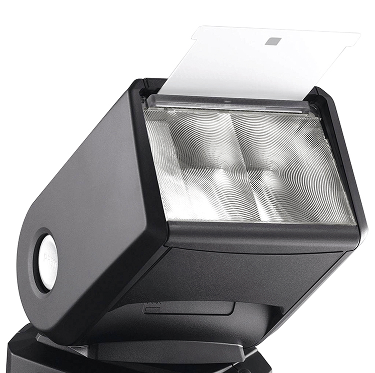 ‘캐치라이트 패널’ 또는 ‘바운스 카드’라고 불리는 부속이다. 평소 플래시 안에 숨겨져 있는 이 패널은 필요에 따라 손으로 빼낼 수 있다. 용도는 크게 두 가지다. 하나는 인물 근접촬영 시 캐치라이트(눈의 검은자 위 하이라이트)를 만든다. 다른 하나는 바운스 촬영 시 빛의 일부를 전면으로 향하게 만들기 위함이다. 보다 빛이 균일하게 조사되며, 보기 싫은 그림자를 제어하는 역할을 한다. 두 가지 용도 모두 패널의 크기가 작은 만큼 드라마틱한 효과는 보기 힘들다. 상황에 따라 꺼냈다 넣었다 하면서 사용하면 된다. 참고로, 캐치라이트 패널 앞에 위치해 있고 똑같이 뺐다 꽂았다 할 수 있는 플라스틱카드는 ‘와이드 패널’이라고 한다. 빛의 조사각을 넓게 만드는 역할을 한다.