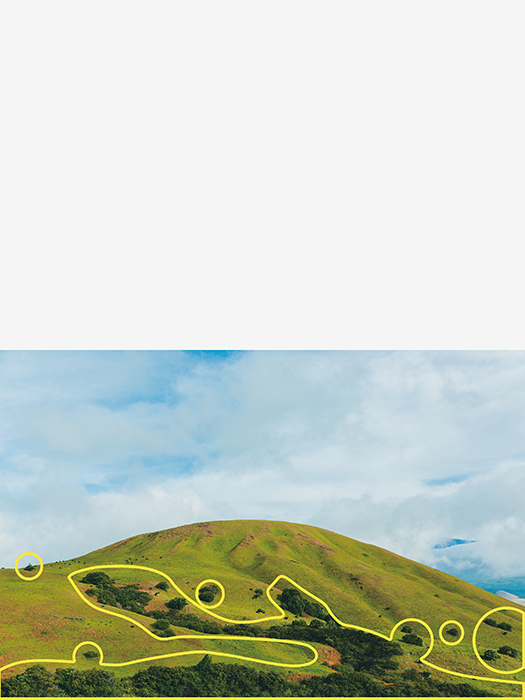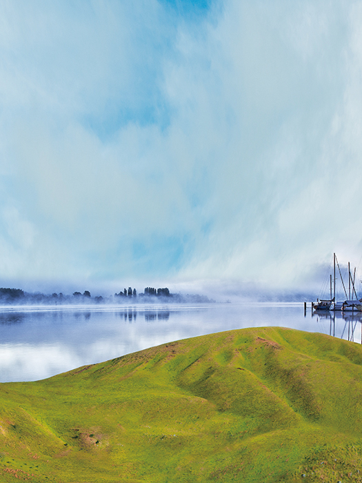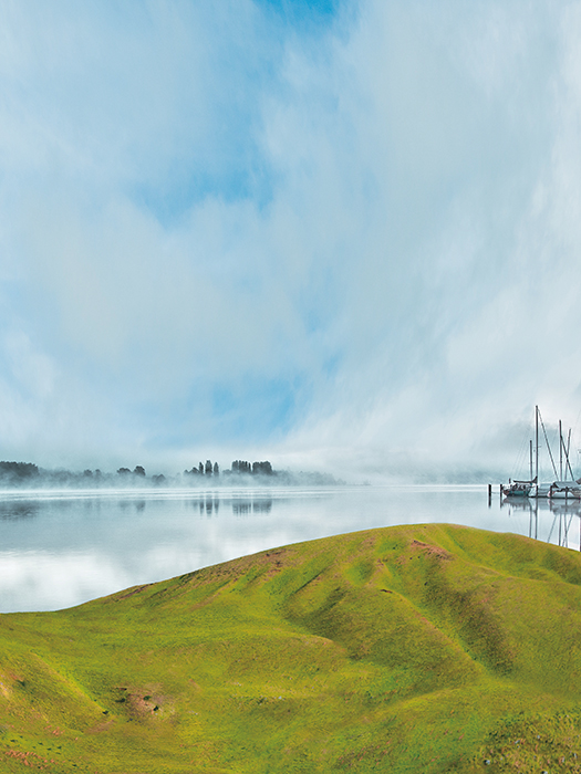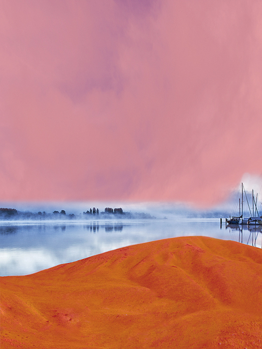 언덕 사진과 잘 어우러지도록 호수의 톤과 컬러를 조절한 이미지.